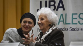 <p dir="ltr">La presidenta de Abuelas de Plaza de Mayo, Estela de Carlotto, destac&oacute; este lunes el trabajo &quot;sin odio&quot; pero &quot;firme en la Memoria, la Verdad y la Justicia&quot; de esa asociaci&oacute;n, durante un homenaje realizado en la Facultad de Ciencias Sociales de la Universidad de Buenos Aires (UBA) por el 25&ordm; aniversario de la creaci&oacute;n del Archivo Biogr&aacute;fico Familiar (ABF). &nbsp; <p dir="ltr">&quot;Fuimos aprendiendo sin perder la ternura. No fuimos rencorosas ni vengativas. Nosotras trabajamos con el amor, sin odio pero firmes en la Memoria, la Verdad y la Justicia, que son las palabras m&aacute;s puestas en pr&aacute;ctica&quot;, valor&oacute; Carlotto en el auditorio de la sede universitaria ubicada en Santiago del Estero 1029 de esta capital. &nbsp; <p dir="ltr">La titular de Abuelas record&oacute; que en el inicio del organismo hubo quienes &quot;quisieron agotar nuestra fuerza&quot; pero, dijo, &quot;no pudieron&quot;. &nbsp; <p dir="ltr">&quot;Nuestra fuerza fue mayor al miedo que pensaron que &iacute;bamos a tener&quot;, valor&oacute; y resalt&oacute; que en la asociaci&oacute;n &quot;se form&oacute; una hermandad&quot; y que la persona que &quot;llegaba llorando s&oacute;lo se le preguntaba &#39;qu&eacute; te pasa&#39;&quot;. &nbsp; <p dir="ltr">Respecto a la tarea de Abuelas en la b&uacute;squeda de sus nietos asegur&oacute;: &quot;Vamos a seguir buscando a los 300 nietos que faltan. Cada logro es una fiesta. Hay que seguir con alegr&iacute;a&quot;.