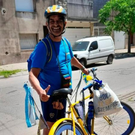Boca es Boca, lo único que importa es Boca y por Boca se hace todo”. La locura por la final de la Copa Libertadores 2023 es total y así lo viven Darío y Leandro, dos hinchas que van rumbo a Río de Janeiro en medios no muy convencionales para un viaje tan largo: el primero en "La Romántica", su bicicleta, y el segundo caminando.   Darío Chaile es peluquero, oriundo de la ciudad de La Plata, y partió desde su casa de Gonnet el miércoles 25 de octubre a bordo de "La romántica", una bicicleta ploteada con los colores azul y oro.    “Empecé este viaje a las 4 de la mañana, en medio de una locura, donde agarré las cosas y salí. Salí de Gonnet y de ahí me fui moviendo en tren. Sueño con estar en la final entre Boca y Fluminense”, relató en su perfil de Instagr am.